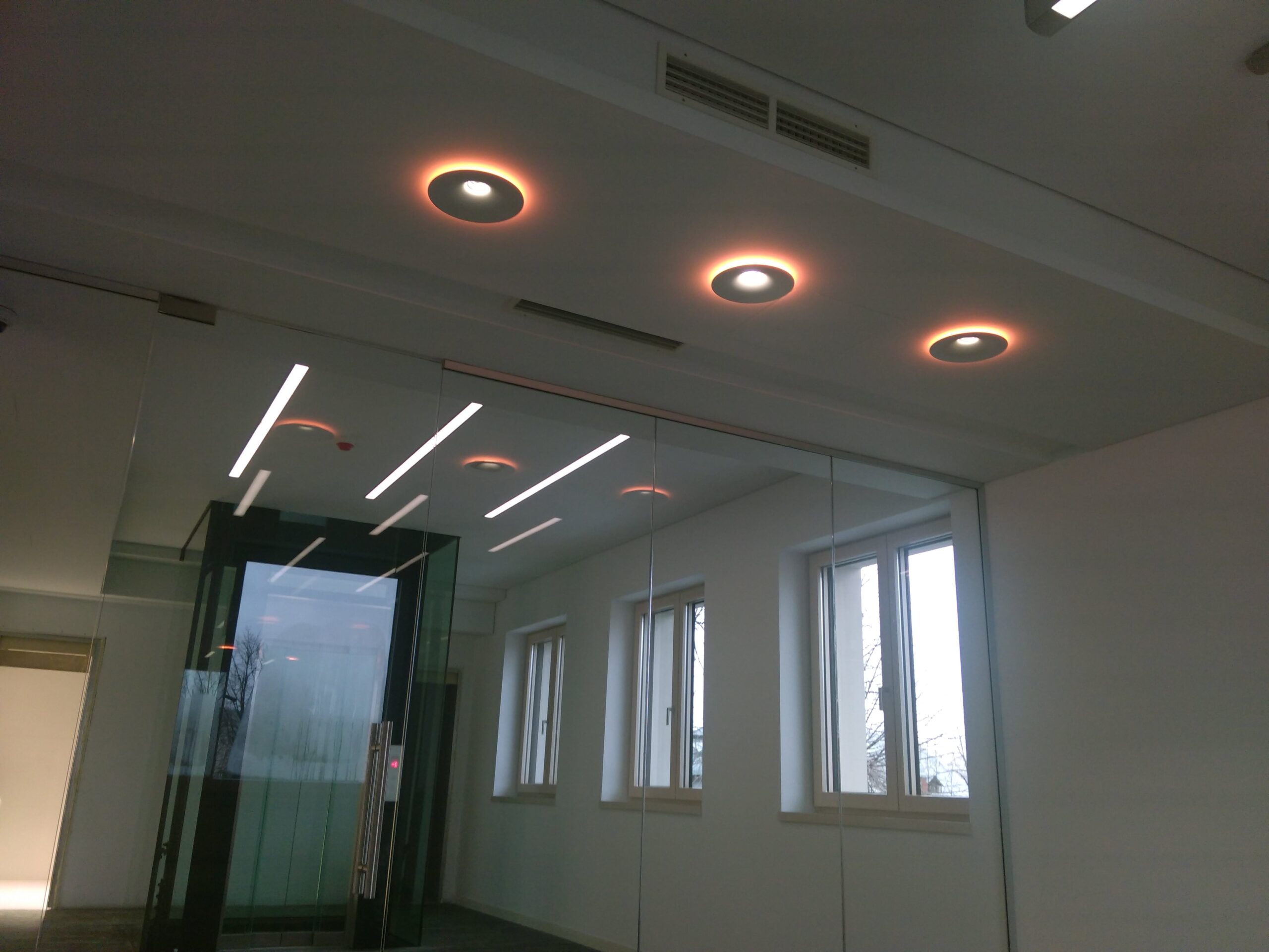 Because it is an office building, a remote management of lighting was required, so that from a distance you can check the light status and you can switch off the ones forgotten by the employees. For the holiday period various scenarios were conceived to simulate human presence through randomly light switching.