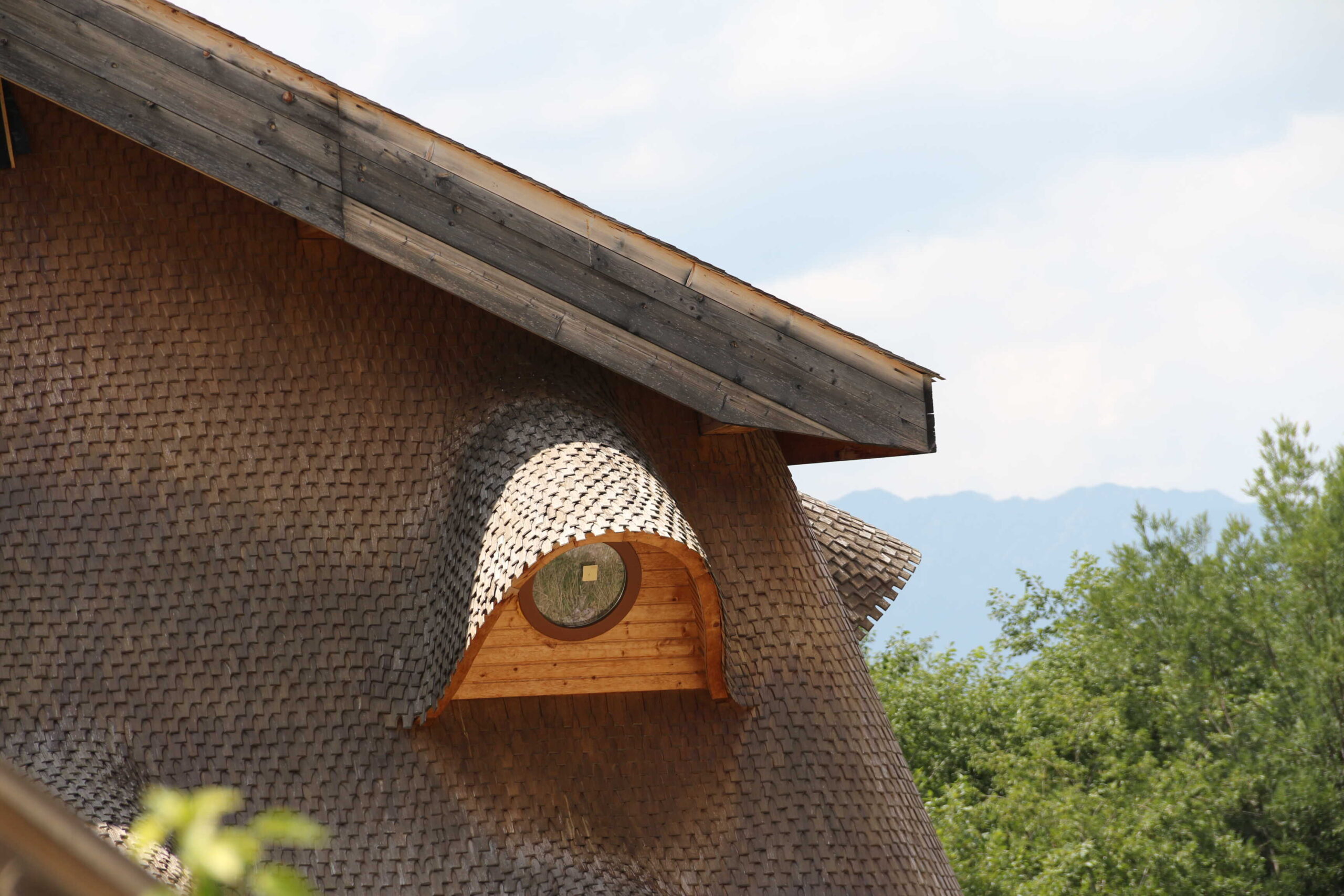 Cu o arhitectură organică, tradițională, o structură de lemn acoperită cu sită lucrată manual chiar în locație, pensiunea este un loc de relaxare extrem de pitoresc.