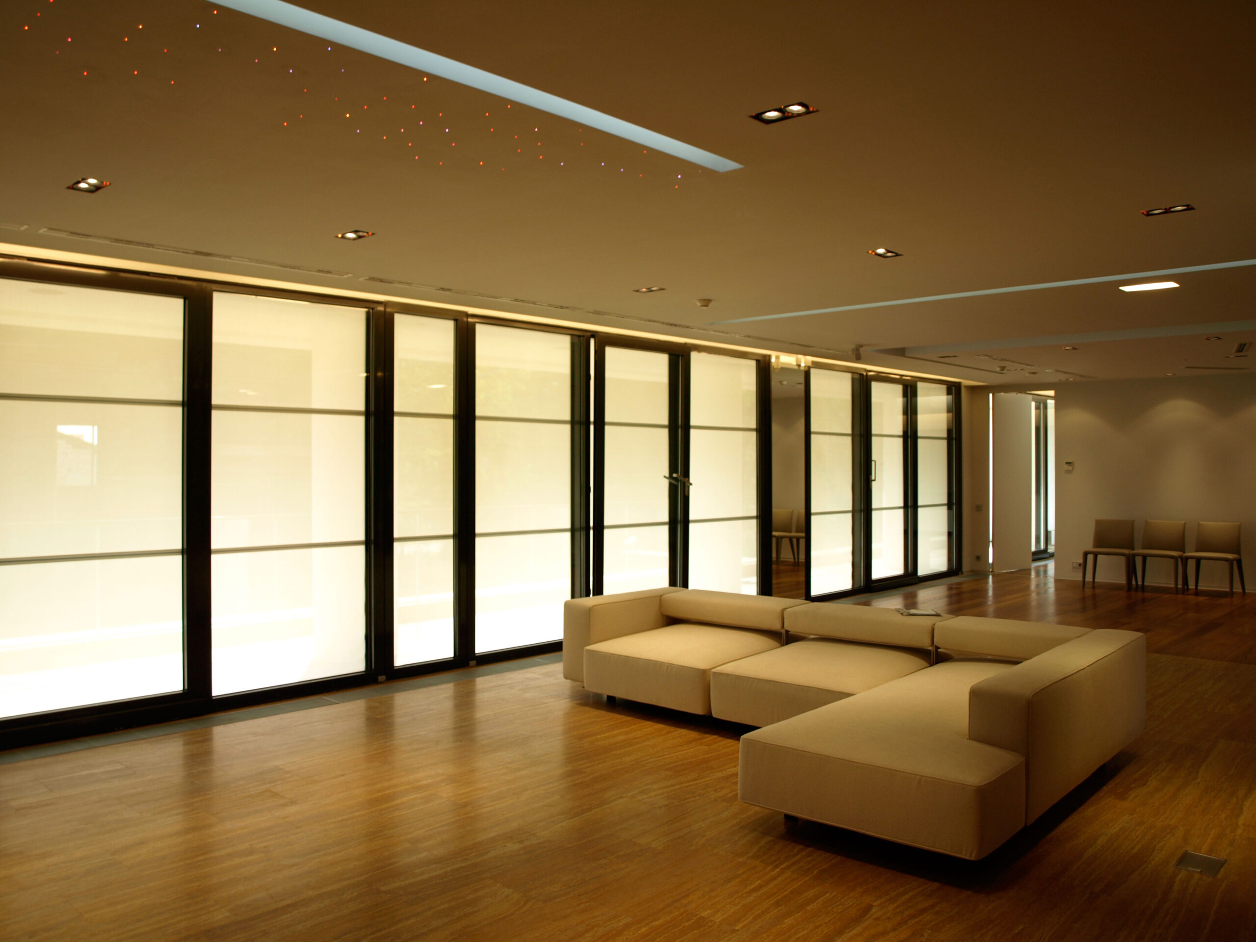 Luminile se pot controla individual sau se pot crea anumite scenarii în funcție de activitatea desfășurată. Iluminatul cu fibră optică contribuie la realizarea unei atmosfere deosebite.